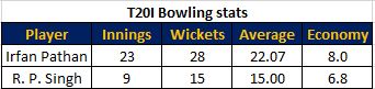 Both the pacers played their last T20I game in 2009. Irfan Pathan made a comeback almost 3 years later but R. P. Singh’s journey had ended in 2009.