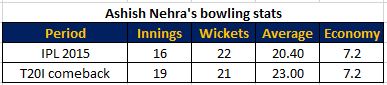 Ashish Nehra also started in 2009 just like Zaheer. He played his last game in 2011 and went out of favour for 5 years. It was his breakthrough season in IPL 2015 that saw him getting picked for India’s WT20 squad in 2016.