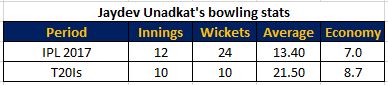 Jaydev Unadkat had a couple of good IPL seasons, one in 2013 and the other one in 2017. He made his T20I debut in 2016 and played until 2018. But he too was dropped based on his bad non-T20I performances.