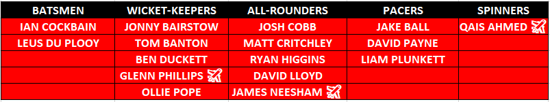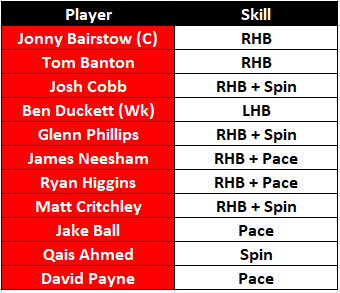 3) The best part for this team is that all the batters who batted from #3 to #6 in the Blast 2021 are in stellar form. Ian Cockbain, Josh Cobb, Ben Duckett, David Lloyd, Ollie Pope, and Leus du Plooy have scored runs at a fair clip along with a healthy average.