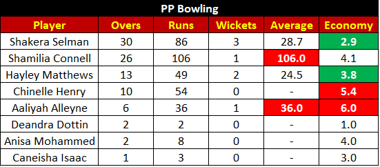 Also, look at the figures for the spinners. 39 wickets out of which 32 were shared by Matthews, Anisa, Qiana, & Stafanie. They bowled nearly 84% of the overs, so thus making more RAOs in the side completely pointless at this point.
