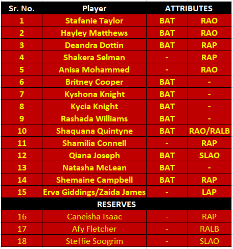 The reason why I only have 4 RAPs is because Dottin is also a regular feature in the side. She will give you 5-6 overs too. The squad above covers all varieties and provides a fine balance.