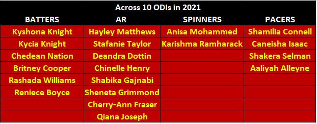WI-W used a total of 20 players across these 10 games and that’s totally fine considering that they are still searching for the right set of bowlers and batters in certain positions.